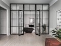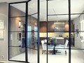 Перегородки с распашными дверьми в стиле лофт пользуются популярностью как среди владельцев жилых помещений, так и собственников офисных пространств. Например, в офисе, расположенном в здании бывшего завода или фабрики, есть необходимость на огромной территории корпуса обособить рабочие места руководителей, а также выделить переговорные зоны.